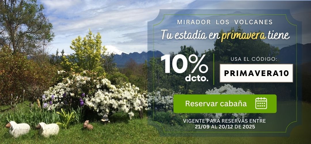 En Mirador Los Volcanes cada día comienza rodeado de naturaleza. Dentro de un parque de 10 hectáreas con bosques nativos, senderos y miradores, encontrarás nuestras 10 cabañas totalmente equipadas, diseñadas para el descanso y la conexión con el entorno. Todo acompañado de una vista única a los volcanes, montañas y al valle de Pucón.